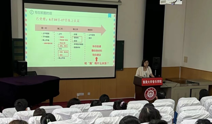 会上,谢书书就如何做好师范专业认证的准备工作进行了说明,并针对音乐学培养方案,围绕专家进校考查前的准备、考查流程、学院支撑材料准备、专家现场考查重点等方面进行了详细指导。