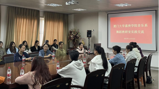 11月27日厦门大学嘉庚学院音乐系舞蹈教研室郑彬彬主任带领舞蹈表演专业的33位师生一行来到我院进行实践交流,与我院舞蹈表演专业师生进行深入的交流。