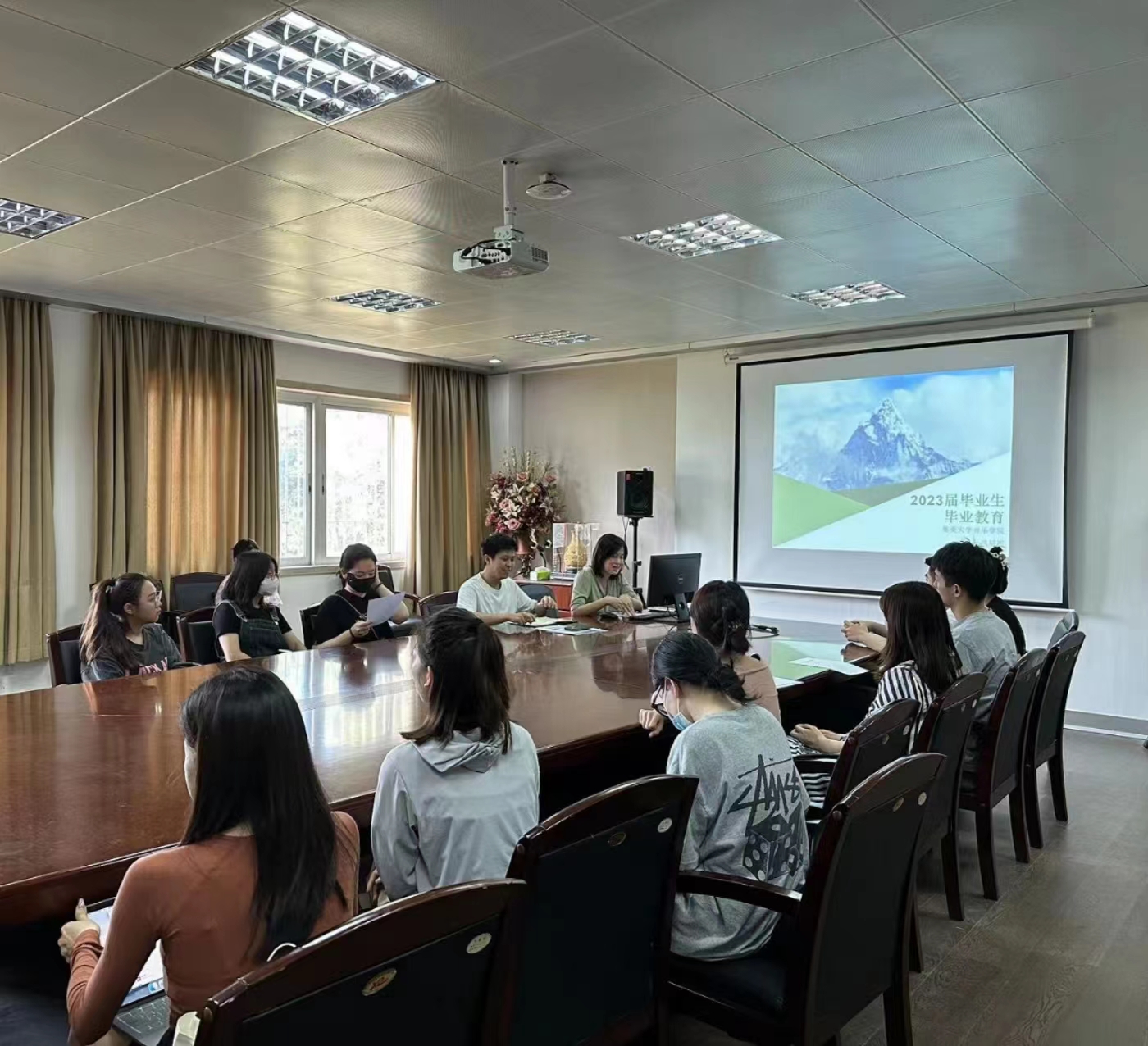 为切实做好2023届毕业生思想教育,平稳、有序推进毕业生离校、就业等工作,5月31日下午,音乐学院于08C0206会议室开展了“艺启话成长”毕业教育活动。本次毕业教育活动由学院党委副书记洪妍妮主讲,毕业班辅导员及2023届毕业生代表参加了会议。