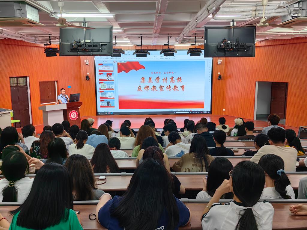 叶警官围绕防范电信诈骗主题,介绍了刷单、网购赔付、票务改退、网络贷款等各类大学生常见的电信诈骗案例。随后,叶警官通过播放防诈骗宣传视频的方式,告知各位同学诈骗无孔不入,各行各业各类人群都有可能成为电信诈骗对象,为同学们再次敲响了防诈警钟,同时也提醒新生遇到可疑情况时,应及时拨打集美学村派出所报警电话求助。最后,叶警官还就国家安全、法制安全、网络安全、禁毒、反邪教等专题做了宣传教育。整个宣讲过程,同学们认真听讲、积极互动,