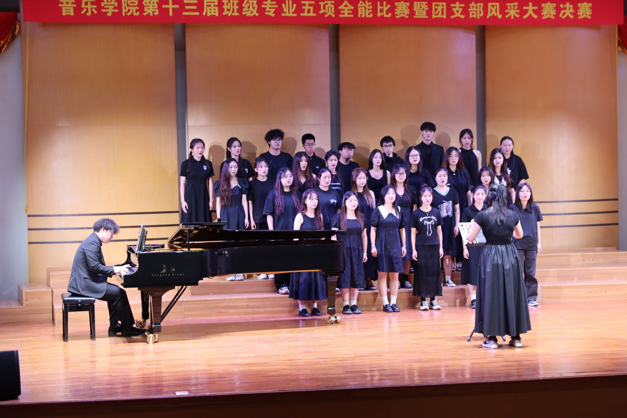 5月29日,音乐学院举办“弘扬五四精神 践行青春使命”主题系列活动——专业五项全能比赛暨团支部风采大赛决赛。全体院领导、院团委书记、专任教师和辅导员出席决赛现场。
