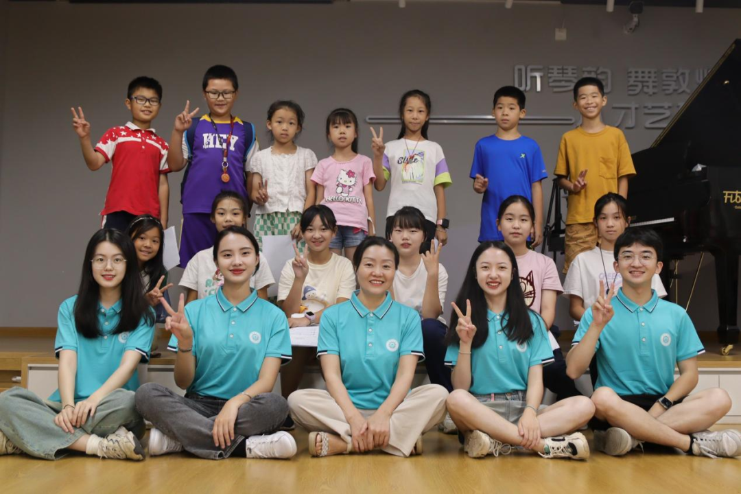 2023年7月6日,实践队正式前往琴韵敦煌集美校区,开展暑期“三下乡”社会实践活动。这一天是孩子们与老师们的第一次接触,也是老师们着力为孩子们打造专业化、多元化、实用化的课程体系的开始。主要课程内容涵盖视唱练耳、基本乐理、合唱训练、旋律编创四门课程。孩子们在玩中学,学中玩,实践队员们用孩子们乐于接受的方式,带领孩子们走进音乐殿堂。