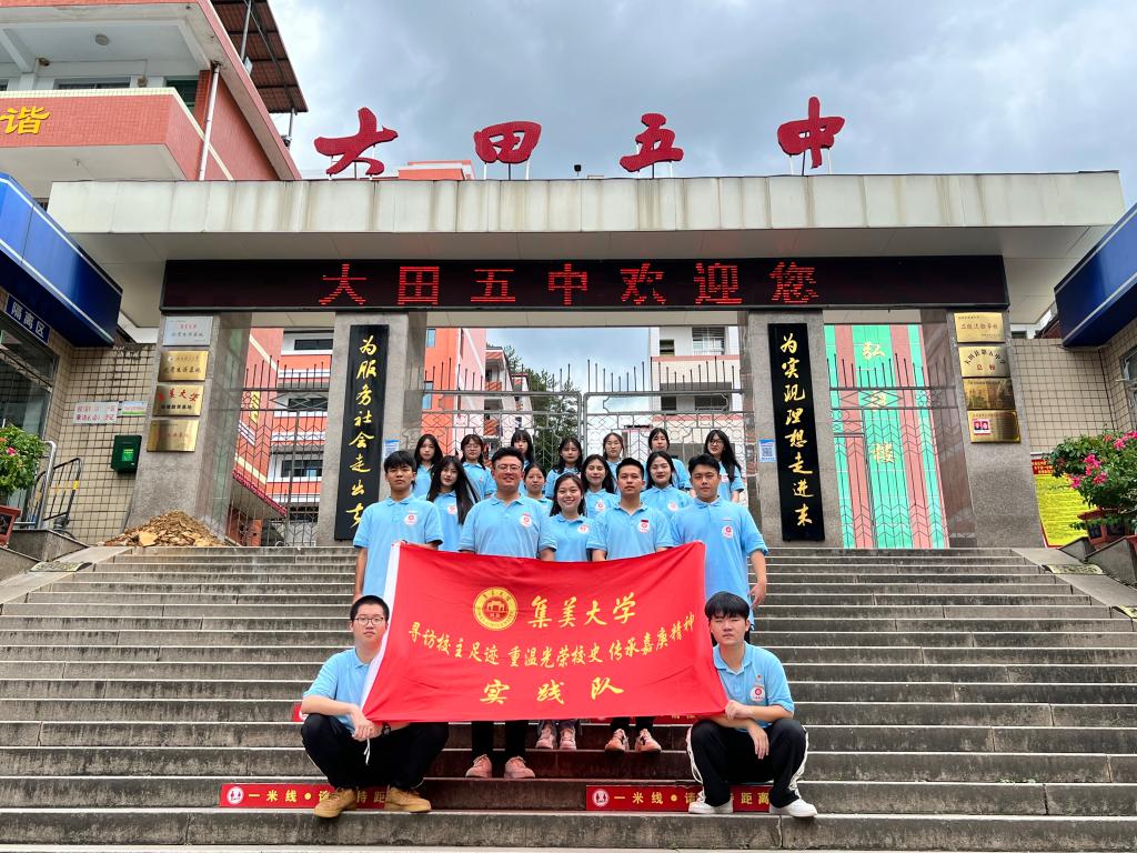 近日,集美大学“寻访校主足迹,重温光荣校史,传承嘉庚精神”实践队走进三明市大田五中开展暑期社会实践活动。实践队员立足学院专业特色,为当地40名中学学生开设了中国传统音乐、合唱、小组唱、嘉庚剧赏析、素质拓展、“四史”教育等课程,以寓教于乐的方式,有机地将嘉庚精神弘扬与音乐素养教育相融合,使中学生们在美育教育中潜移默化地根植爱国主义情怀,感悟嘉庚精神真谛。