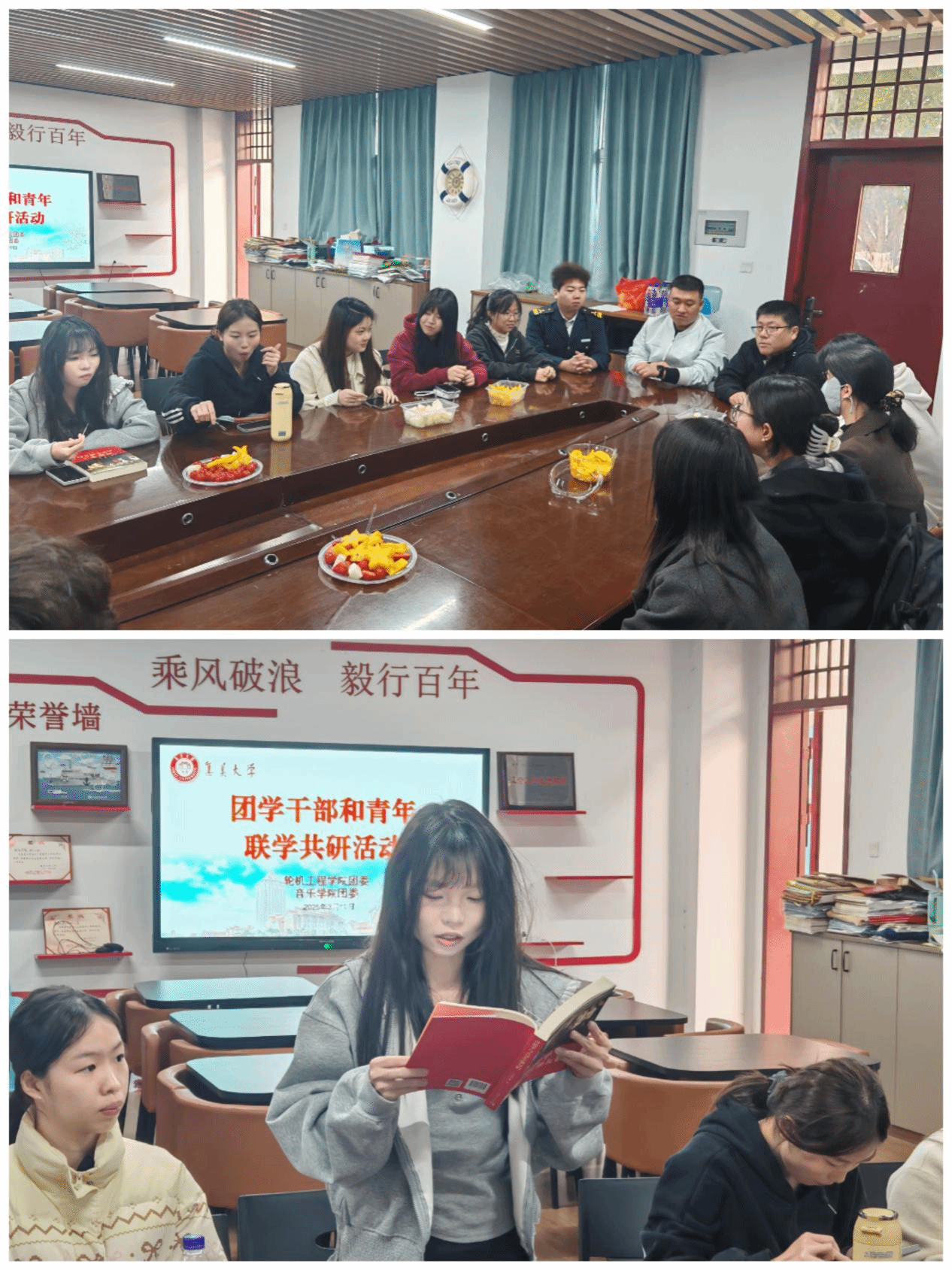 活动通过专题领学、分组研讨等形式,结合音乐学院的艺术特色与轮机工程学院的实践精神,探讨如何将专业学习与思政教育深度融合。现场气氛活跃,学生们结合书中习近平总书记对青年的殷切期望,分享了艺术创作中的文化传承使命和工科实践中的创新责任,展现了跨学科交流的思维碰撞。通过跨领域对话,不仅拓宽了学生的认知视野,更推动艺术与工科在思想教育层面的融合。