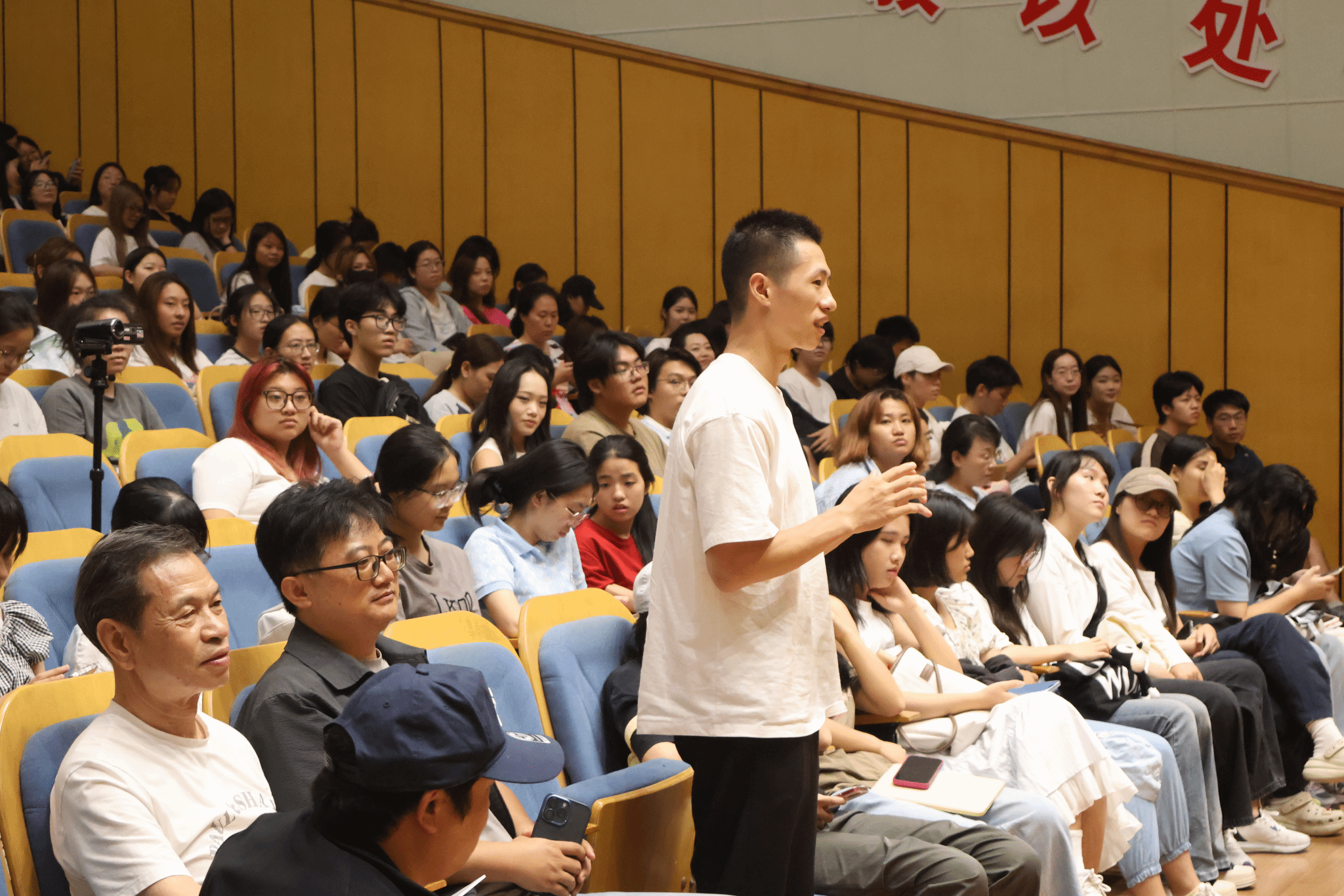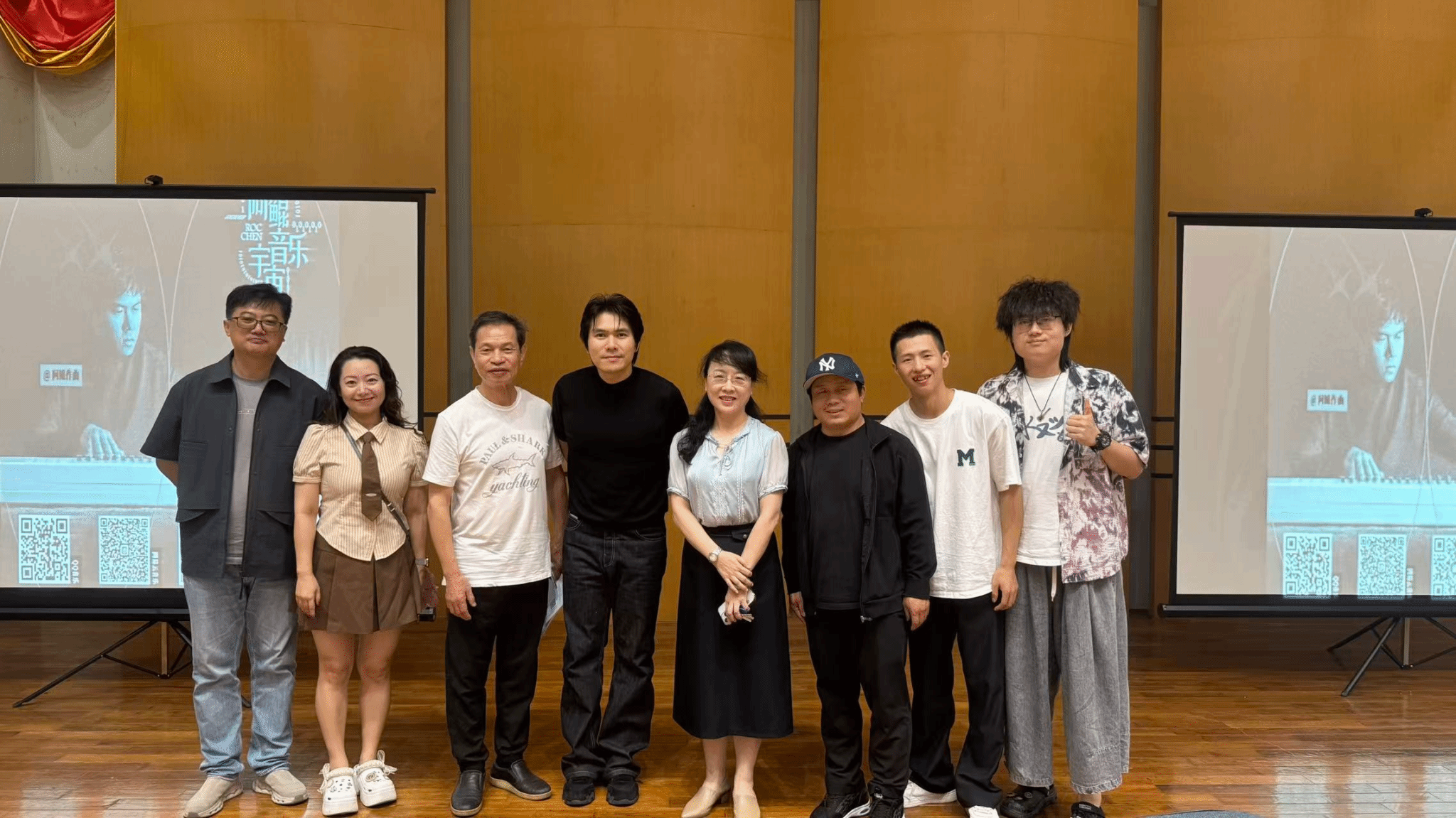 第三部分,阿鲲老师介绍了他的哔哩哔哩账号,表示未来将通过这一平台与广大音乐爱好者分享更多作曲经验与感悟。在互动环节,现场师生踊跃提问。康长河教授就“AI时代音乐学子的定位”提出问题,阿鲲老师回应称,AI目前无法替代人类对音乐的深度开发与情感表达。他以自身作品被AI模仿为例,指出其生成音乐在情感层次与创意上仍远逊于人类创作,鼓励同学们积极面对技术变革,不断提升专业能力与艺术修养。