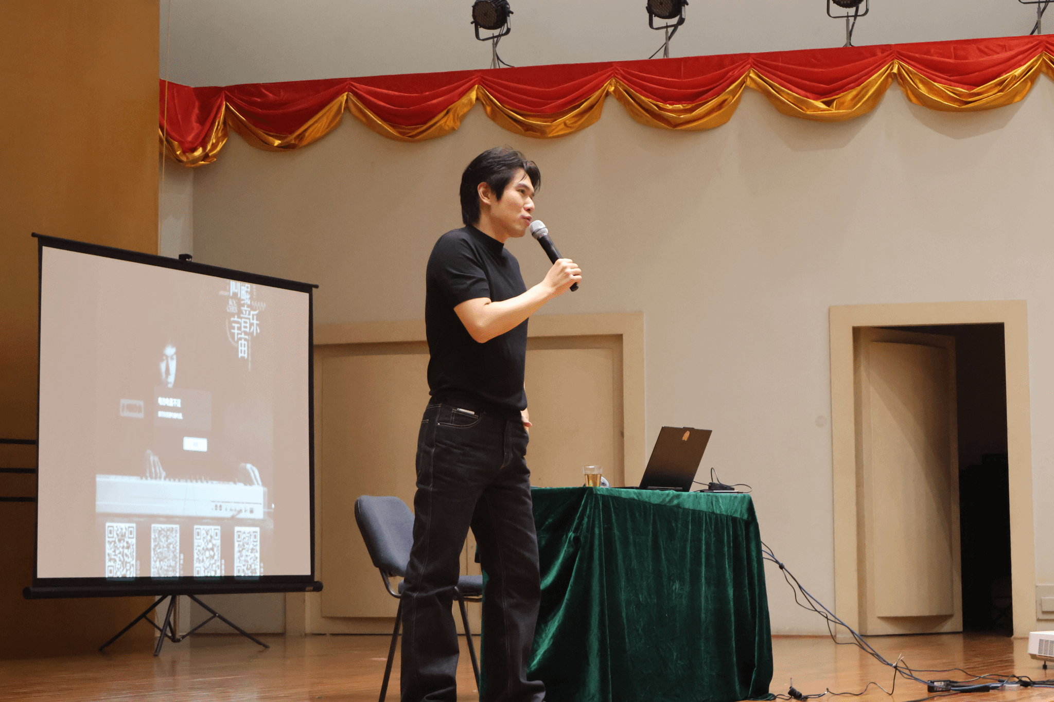 阿鲲老师的讲座分为三个部分。第一部分,他回顾了自己的学习经历,从一名理工科本科生转型考入四川音乐学院作曲系的历程。他鼓励同学们要扎实掌握作曲相关的理论知识,包括配器法、和声、复调等,同时也要重视音乐历史的学习,为创作打下坚实基础。