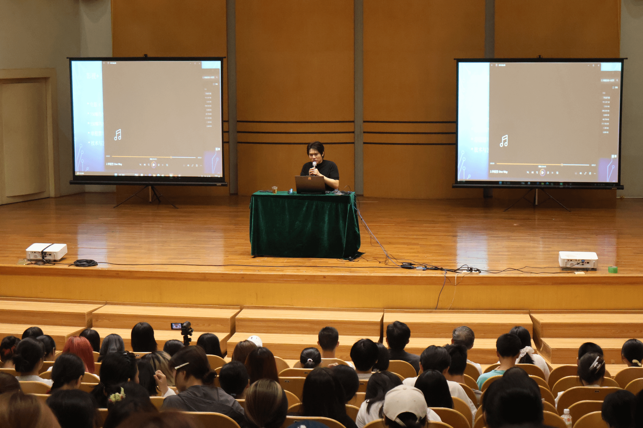 第二部分,阿鲲老师结合《飞驰人生》《流浪地球》等具体影片的配乐实例,深入浅出地讲解了他在音乐设计中对复调等作曲技法的实际运用。他提到,音乐在影视作品中不仅是情绪的渲染,更是叙事的一部分,恰当的音乐能极大增强作品的感染力。