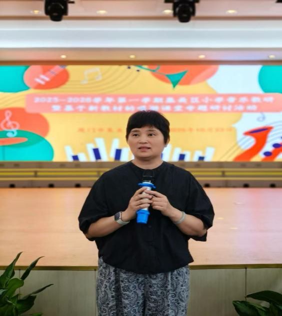课后,厦门市集美区教师进修学校音乐教研员陈美叶老师对课程进行了点评,肯定了两位老师紧扣童谣特点的教学设计和富有感染力的课堂情景。她建议以节奏为主线,更好地利用舞台空间,并关注每个孩子的表现,鼓励他们发挥天赋。