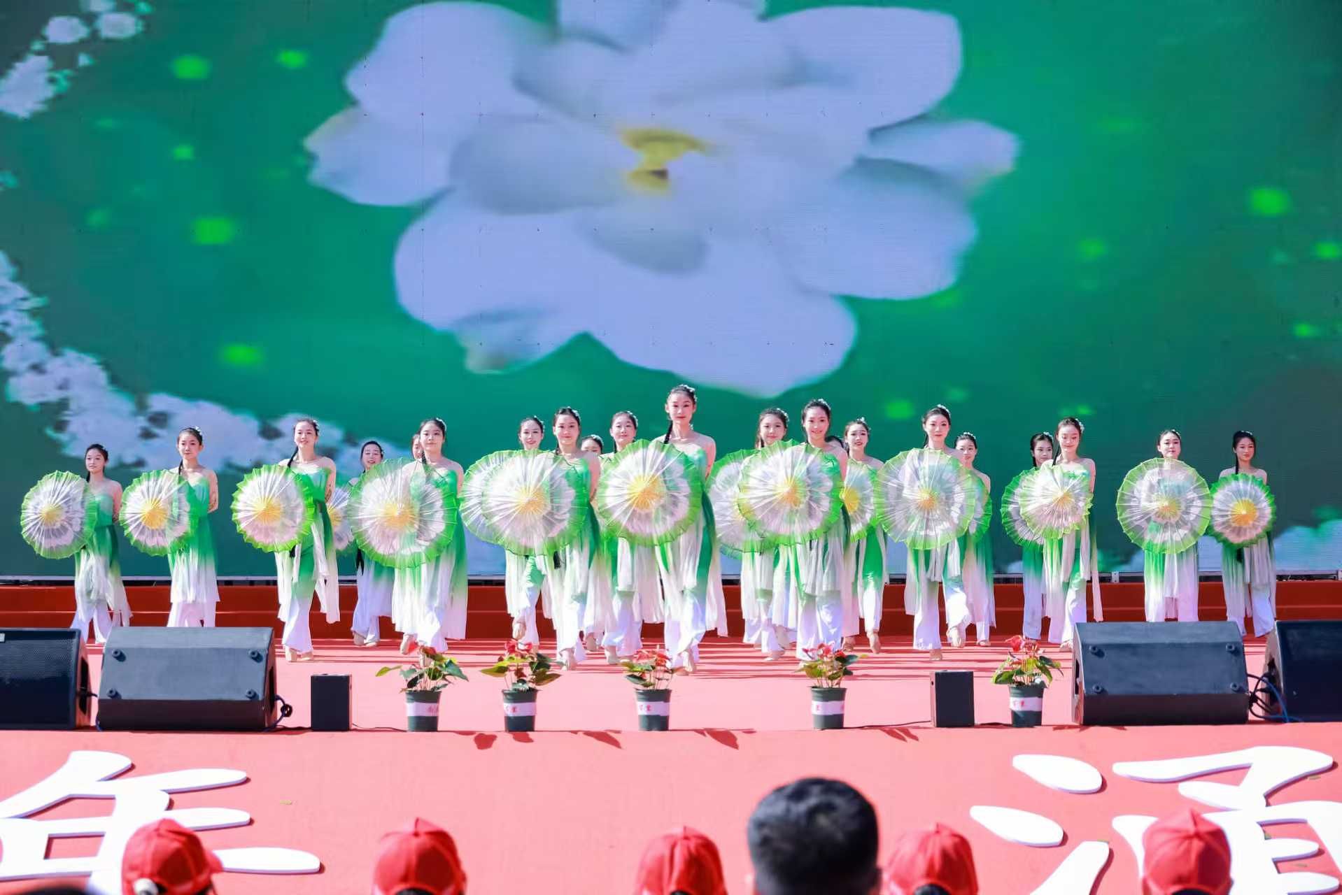 庆典仪式上,音乐学院学生生动演绎了中国传统舞蹈的经典之作《茉莉》、歌伴舞《尚养》等,在优美旋律中,舒展舞姿将东方美学的含蓄深邃展现得淋漓尽致,博得到场嘉宾观众的阵阵掌声。