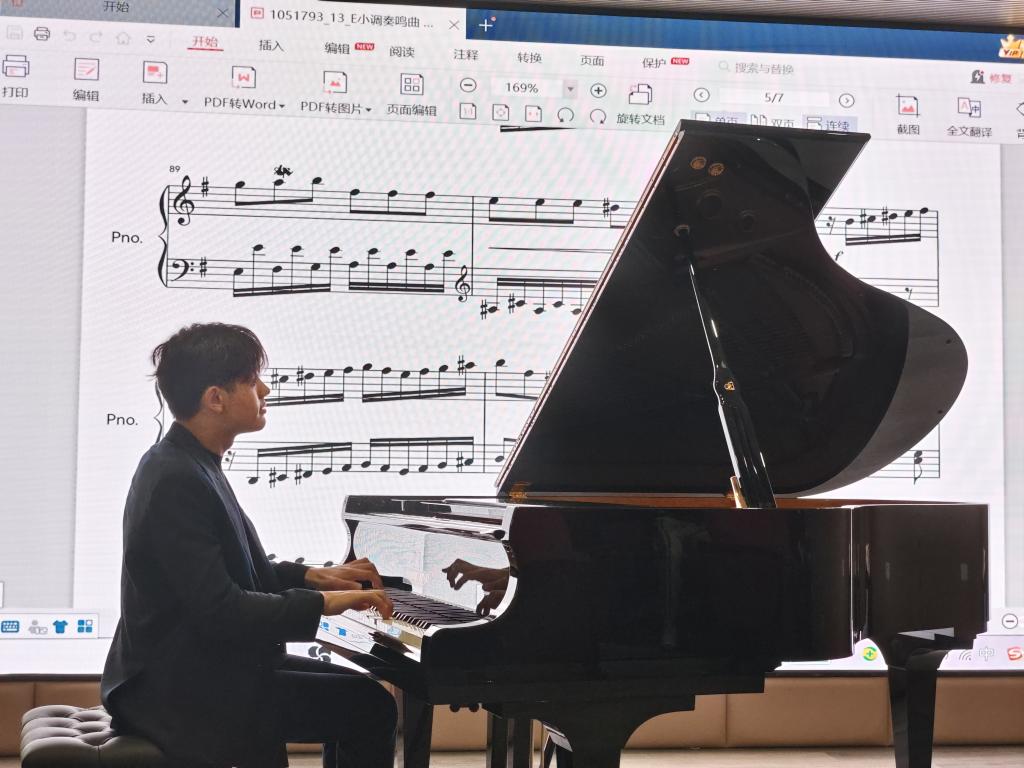 在公开课上,熊超认真聆听了学生的演奏并进行细致的点评,从乐谱研读、节奏、音乐处理等方面进行了讲解与分析,提出针对性的建议。接着,陈铮先生为师生带来了一场精彩的钢琴表演,演奏了多首经典作品,包括海顿e小调奏鸣曲、柴可夫斯基升c小调夜曲、肖邦c小调夜曲、勃拉姆斯-帕格尼尼变奏曲,收获了师生热烈的掌声。两位老师的精彩指导在教学现场获得了明显的效果,到场观摩的师生都深受启发。