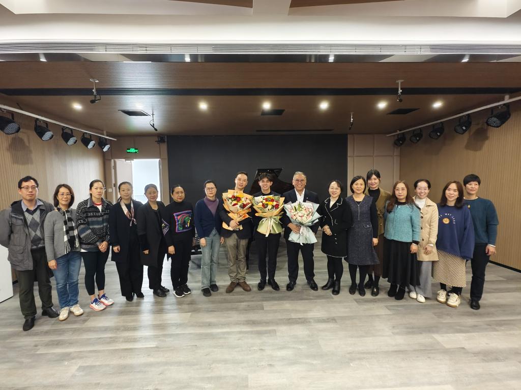 3月31日上午,音乐学院在08D0401小型演播厅邀请青年钢琴家熊超为学院师生上了一堂钢琴公开课,课后邀请校主陈嘉庚先生后人、英国青年华裔钢琴家陈铮先生进行钢琴演奏,陈嘉庚后裔陈铭先生、音乐学院院长杨丽霞、钢琴教研室教师代表、集美学校委员会和校董办相关人员以及钢琴专业学生代表参与了本次公开课。