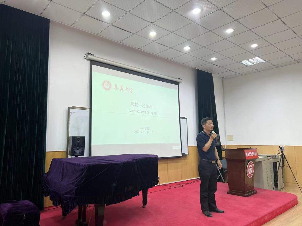 2023年9月2日下午,音乐学院在艺术楼08C0206会议室召开新学期教职工大会,会议由院党委副书记洪妍妮主持,全院教职工参加。