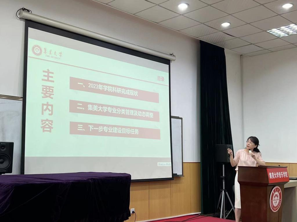 会上,院长杨丽霞聚焦专业建设,用详实的数据全面总结回顾了2023年学院科研任务完成情况,分析了当前学院专业建设的总体情况,对照专业分类管理及动态调整的相关要求,提出下一步专业建设的目标任务,安排部署新学期学院内涵发展工作。