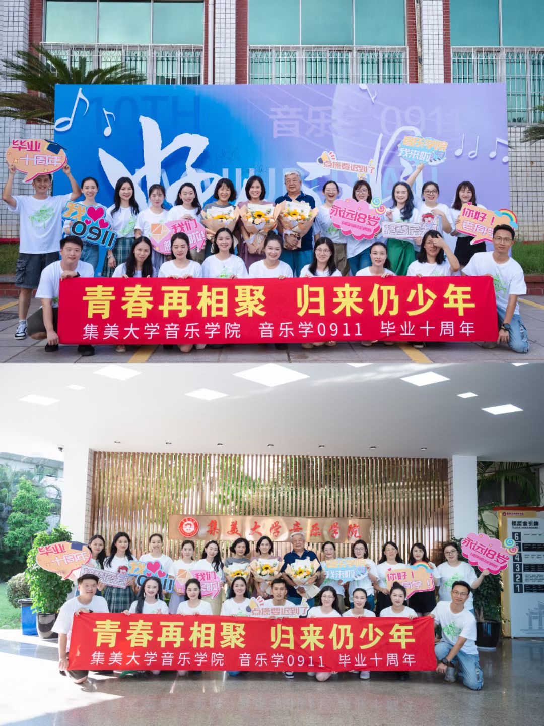 9月30日,音乐学0911校友返校举行毕业十周年纪念活动。学院党委副书记洪妍妮、院党委组织员(原音乐学0911辅导员)张以、学院关工委成员、退休教师刘忠民参加了活动。