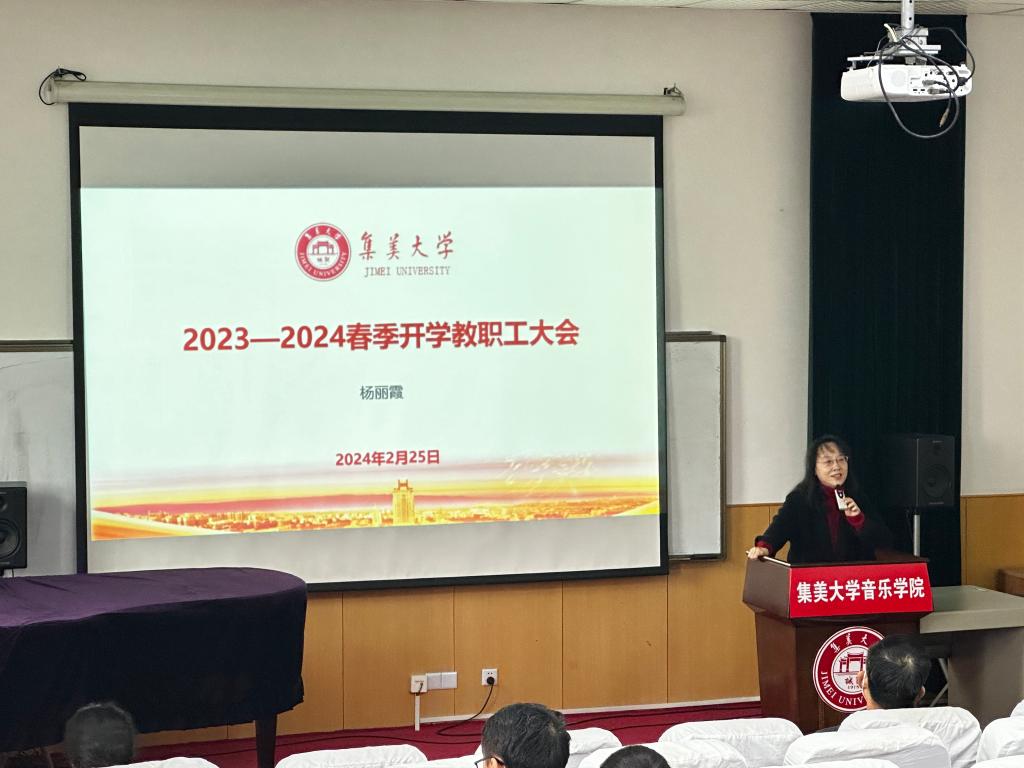 2024年2月25日上午,音乐学院在艺术楼08C0206会议室召开新学期教职工大会,会议由院党委副书记洪妍妮主持,全院教职工参加。