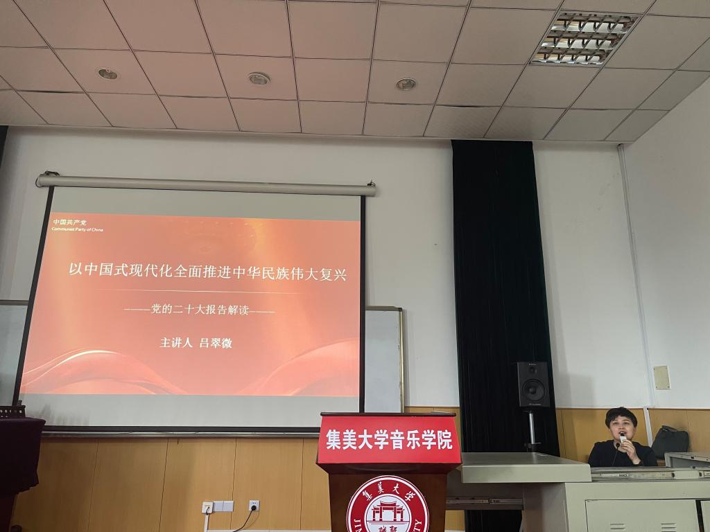为深入学习贯彻党的二十大精神,11月23日下午,音乐学院党委邀请我校马克思主义学院吕翠微教授为学院全体教职工、党员和入党积极分子解读党的二十大报告。讲座由学院党委副书记洪妍妮主持。