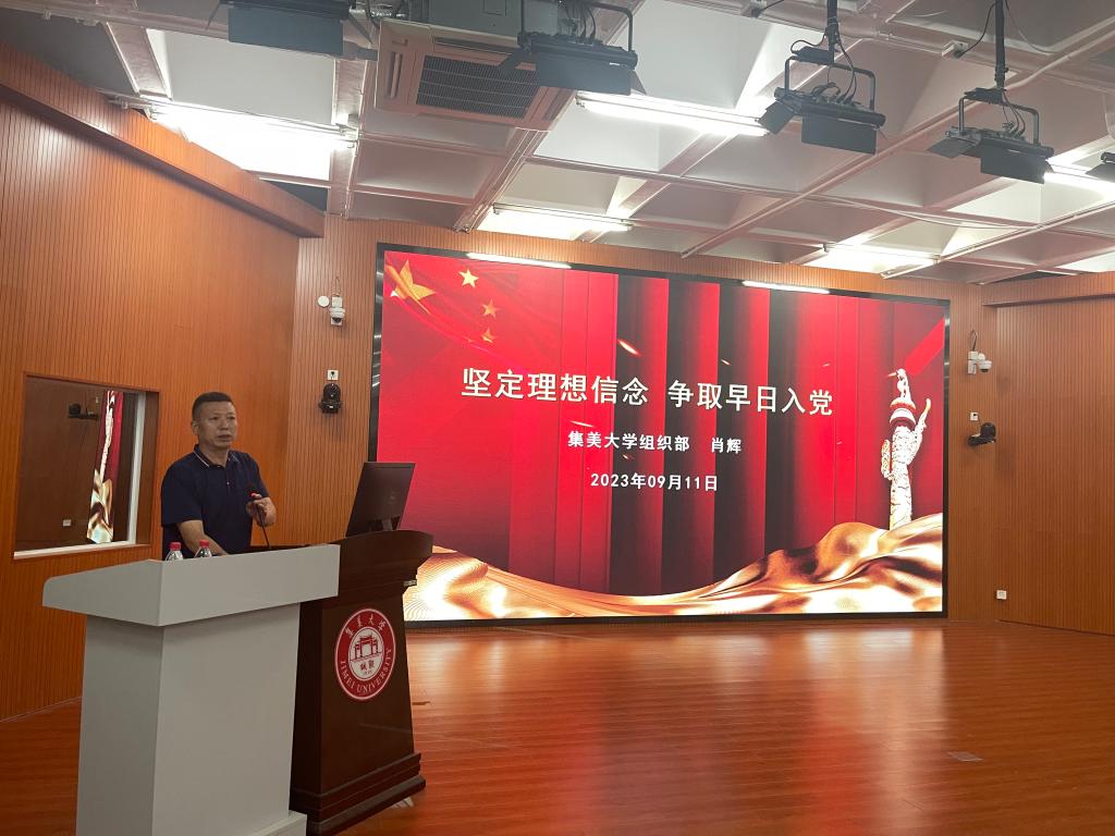 为增强学生对党的认识,端正入党动机,坚定入党信念,音乐学院于9月11日开展以“坚定理想信念 争取早日入党”为主题的入党启蒙教育专题讲座。本次讲座由校党委组织部副部长肖辉主讲,音乐学院党委副书记洪妍妮主持,全体2023级新生及入党积极分子聆听了讲座。