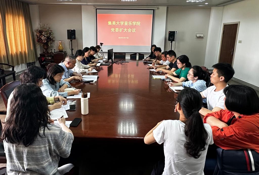 4月17日上午,音乐学院召开党委扩大会议部署党纪学习教育工作。会议由院党委书记何治富主持,党委委员、科级干部、党支部全体支委参加会议。